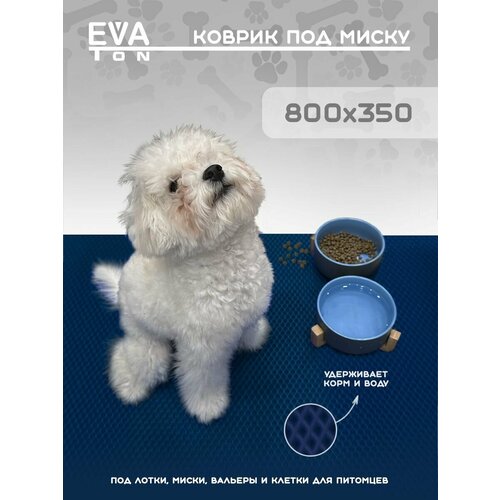EVA Эва коврик под миску для кошек и собак, 80х35см Универсальный, Ева, Эво темно-синий Ромб