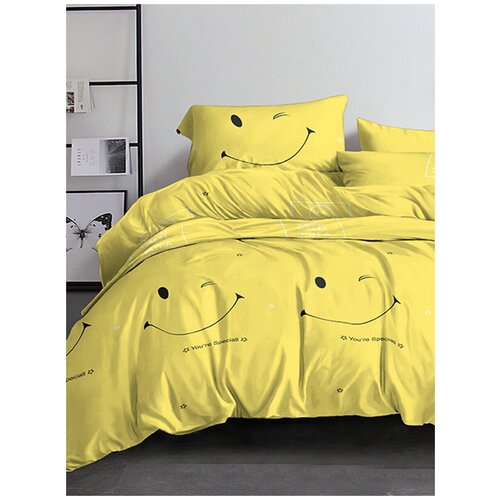 Постельное белье Simple House "Smile" 2-спальный наволочки 50х70 2шт Простынь на резинке 160х200 см Пододеяльник 175х215 см