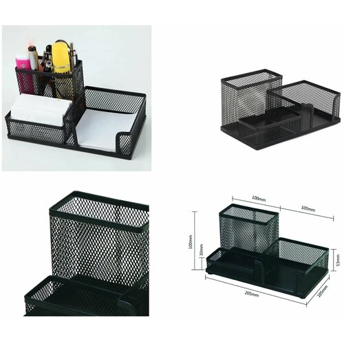 Подставка для канцелярских принадлежностей Asmar, 3 ячейки, металл, черный цвет
