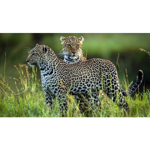 Постер на экокоже 60x60 LinxOne "Leopard Family леопарды" интерьер для дома / декор на стену / дизайн