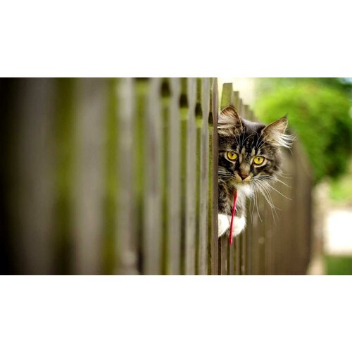 Картина на экокоже 60x110 LinxOne "Cat head bars look" интерьер для дома / декор на стену / дизайн
