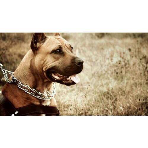 Картина на холсте 50x70 LinxOne "Амстаф взгляд морда look" интерьер для дома / декор на стену / дизайн