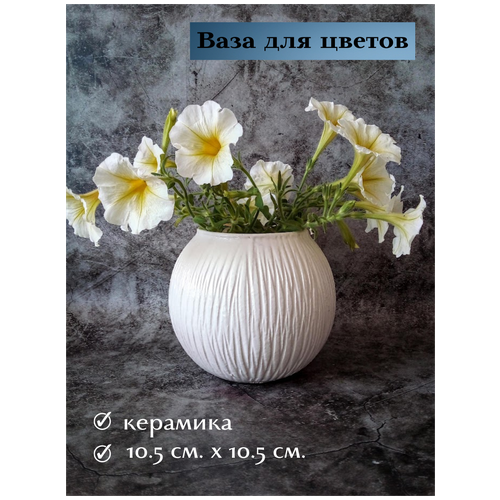 Ваза "Шарик" настольная, керамическая, белая, круглая, для цветов.