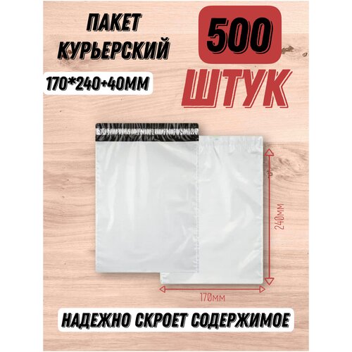 Курьер-пакет 170*240+40мм без кармана, без логотипа, толщина 50 мкм, белый (500 штук в упаковке)
