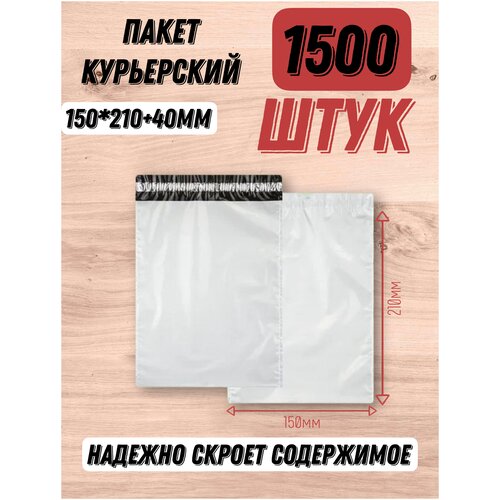 Курьер-пакет 150*210+40мм без кармана, без логотипа, толщина 50 мкм, белый (1500 штук в упаковке)