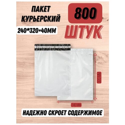 Курьер-пакет 240*320+40мм без кармана, без логотипа, толщина 50 мкм, белый (800 штук в упаковке)