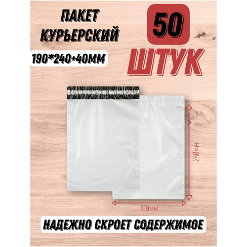 Курьер-пакет 190*240+40мм без кармана, без логотипа, толщина 50 мкм, белый (50 штук в упаковке)