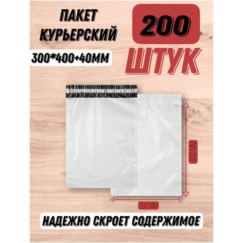 Курьер-пакет 300*400+40мм без кармана, без логотипа, толщина 50 мкм, белый (200 штук в упаковке)