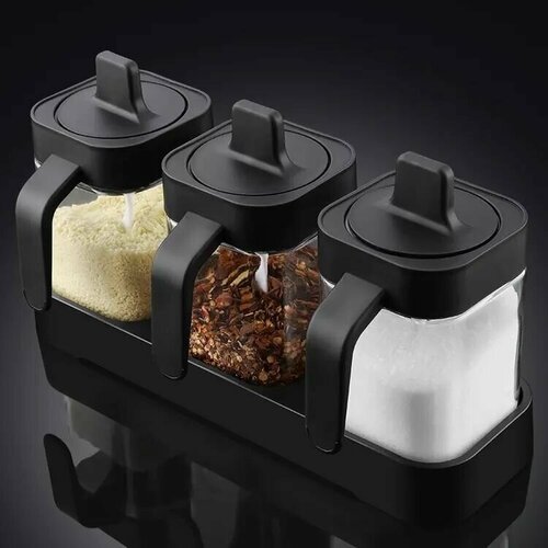 Набор из 3 емкостей для специй с ложками на подставке для сыпучих продуктов