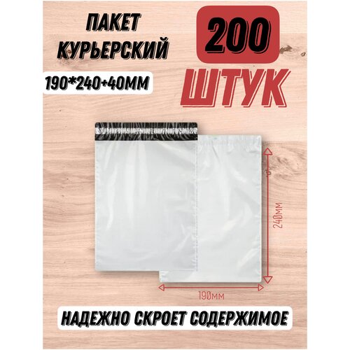 Курьер-пакет 190*240+40мм без кармана, без логотипа, толщина 50 мкм, белый (200 штук в упаковке)