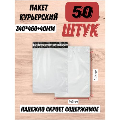 Курьер-пакет 340*460+40мм без кармана, без логотипа, толщина 50 мкм, белый (50 штук в упаковке)