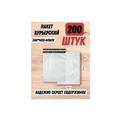 Курьер-пакет 340*460+40мм без кармана, без логотипа, толщина 50 мкм, белый (200 штук в упаковке)