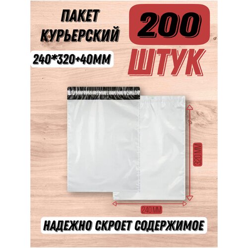 Курьер-пакет 240*320+40мм без кармана, без логотипа, толщина 50 мкм, белый (200 штук в упаковке)