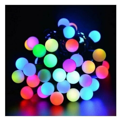Гирлянда светодиодная, гирлянда шарики, RGB гирлянда GCL CH-7053, новогодняя гирлянда на елку, разноцветная, 10 м, темный провод, соединяемая