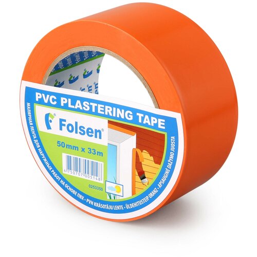 Лента малярная Folsen 50мм x 33м оранжевая PVC, арт.0253350