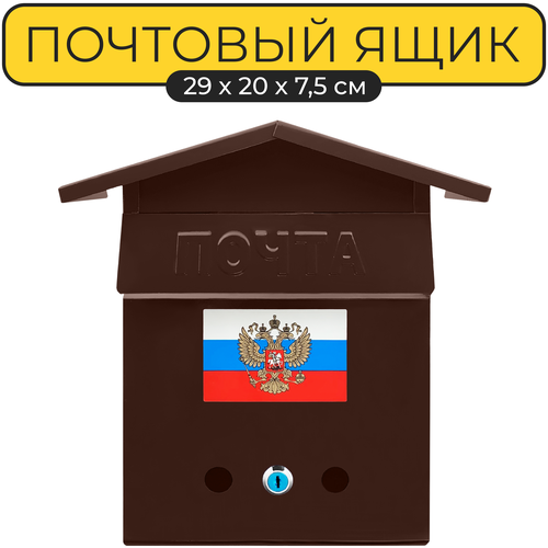 Почтовый ящик 30х20 см. Yoma Home Домик с замком, металлический, коричневый
