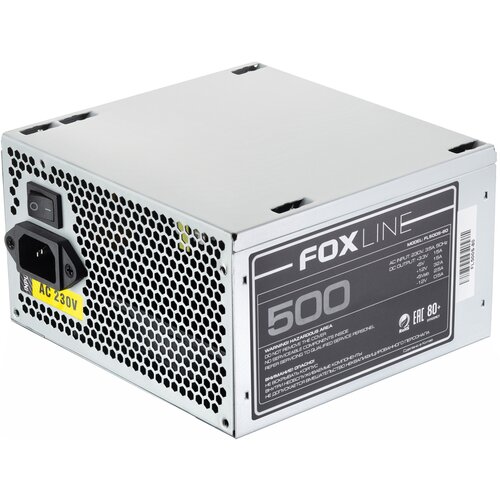 Блок питания Power Supply Foxline, 500W, ATX, APFC, 120FAN, CPU 8(4+4)pin, MB 24pin, PCI-E 6+2pin, 1*PATA, 3*SATA, 80+