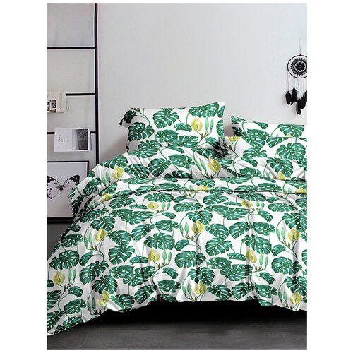 Постельное белье Simple House "Цветы" евро наволочки 50х70 2шт Простынь 240х215 см Пододеяльник 200х215 см
