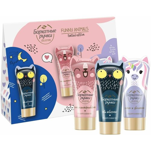 Подарочный набор Бархатные Ручки Funny Animals Основной уход: Крем для рук увлажняющий, 3 шт х 45 мл