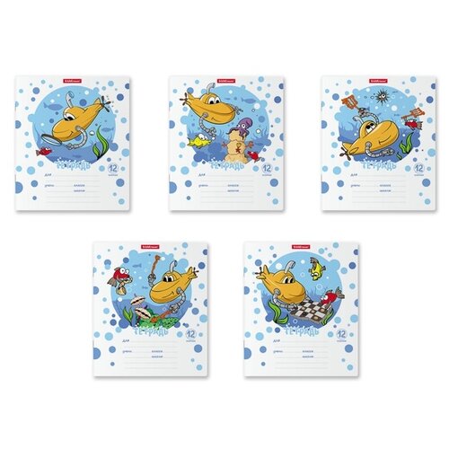 Тетрадь 12 листов в клетку ErichKrause Funny Submarine, обложка мелованный картон, блок офсет, белизна 100%, микс