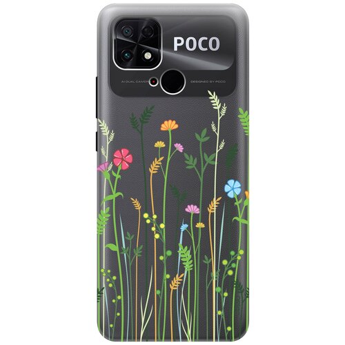 Силиконовый чехол на Xiaomi Poco C40 / Сяоми Поко С40 с 3D принтом "Funny Foxes" прозрачный
