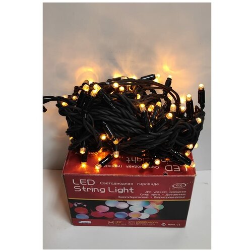 Светодиодная гирлянда GLQ -102R-5M-50-Y (50шт диодов), длина 5м,230В, ПВХ кабель черный, 1,5м шнур питания с вилкой.