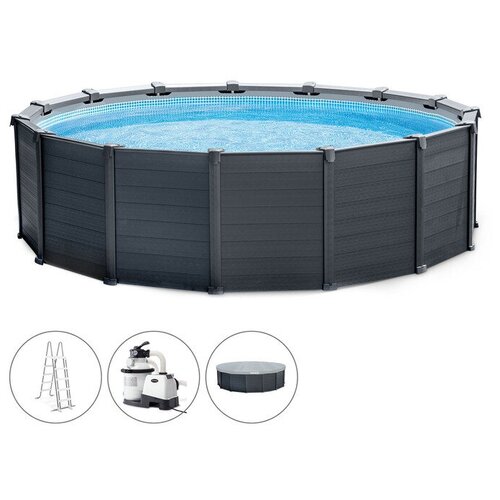 INTEX Бассейн каркасный Graphite Gray, 478 х 124 см, песчаный фильтр-насос, лестница, тент, подстилка, 26384NP INTEX