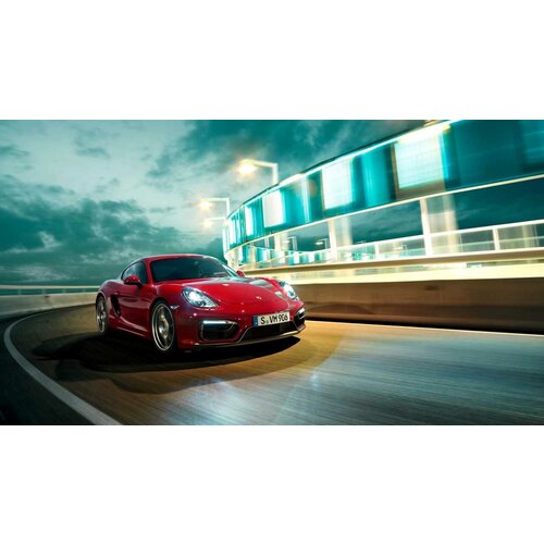 Картина на холсте 60x90 LinxOne "2014 GTS кайман Porsche" интерьер для дома / декор на стену / дизайн