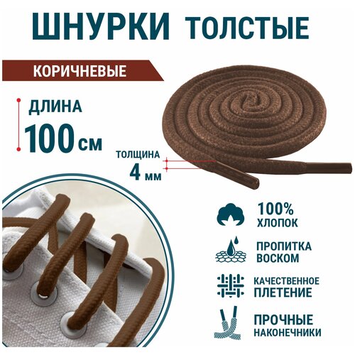 Шнурки для обуви GUIN Коричневые Толстые Круглые 100 см, прочные шнурки для кроссовок, кед, ботинок, берцев с пропиткой, вощенные, универсальные