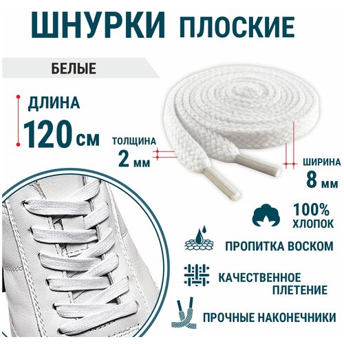 Шнурки для обуви Guin 100 см, плоские вощеные, белые