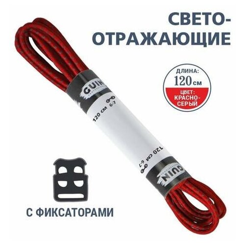 Шнурки светоотражающие в блистере 120 см Guin красно-серые
