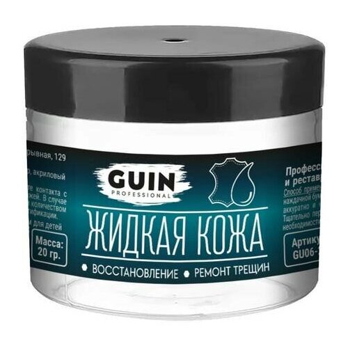 Жидкая кожа GUIN 20 гр Белая, восстановитель для ремонта обуви, сумок, авто, мебели, кожаных изделий, крем-краситель