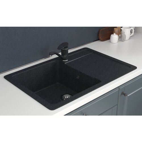 Мойка для кухни Gamma Stone GS-15 308 из искусственного камня с сифоном, черный матовый