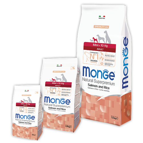 Корм сухой Monge Dog Speciality Mini / Монж для взрослых собак мелких пород с лососем и рисом 800г