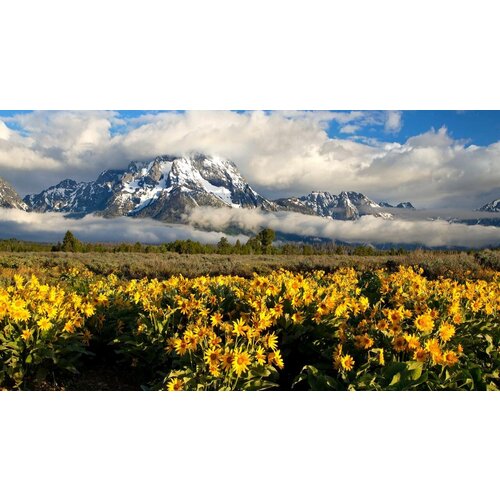 Картина на холсте 40x60 LinxOne "Пейзаж grand teton national park" интерьер для дома / декор на стену / дизайн