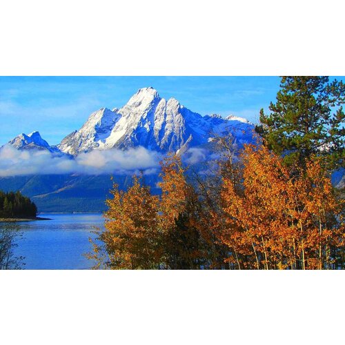 Картина на холсте 50x70 LinxOne "Скалистые горы Grand teton" интерьер для дома / декор на стену / дизайн