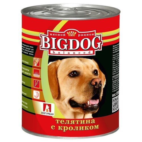 Влажный корм BIG DOG для собак, телятина/кролик, ж/б, 850 г