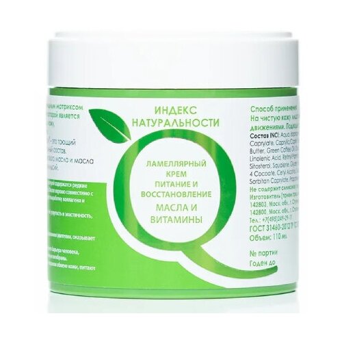 ICHTHYONELLA, Натуральный ламеллярный крем для лица питание и восстановление Индекс Натуральности 110 мл
