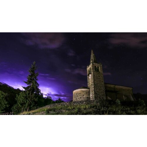 Картина на холсте 50x70 LinxOne "Chiesa di S Maurizio ночь" интерьер для дома / декор на стену / дизайн