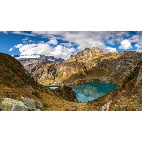 Постер на экокоже 50x50 LinxOne "Lago di Saoseo камни Val" интерьер для дома / декор на стену / дизайн