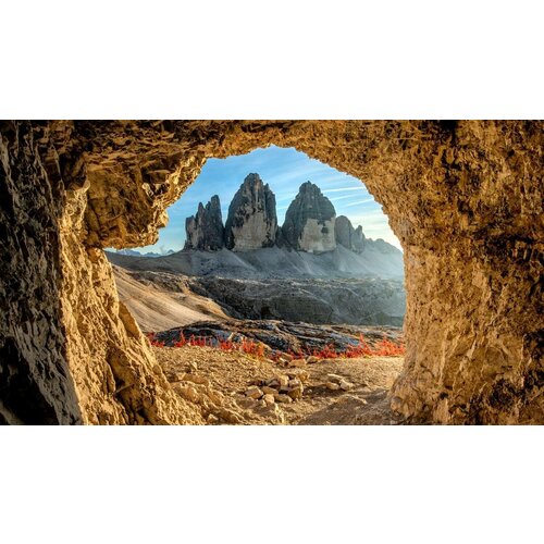 Постер на экокоже 50x80 LinxOne "Пейзаж камни Tre Cime di" интерьер для дома / декор на стену / дизайн
