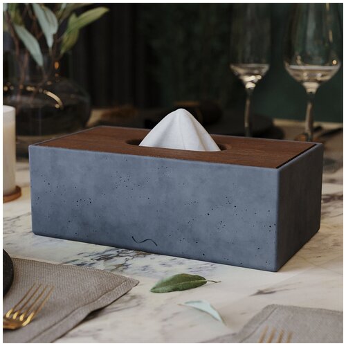 Салфетница интерьерная с крышкой из бука, органайзер для салфеток Helen Matte, 13x24 см, бетон, кремовая матовая