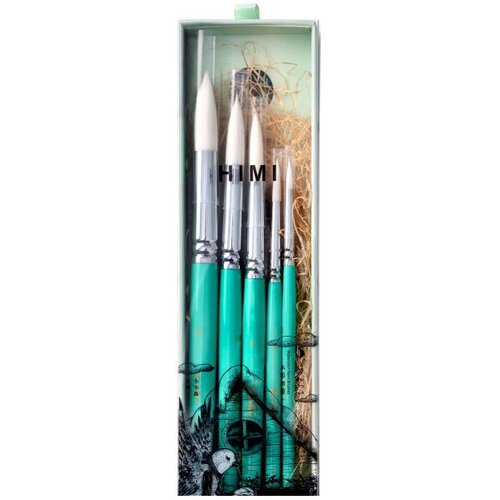 Набор кистей из синтетики HIMI 5шт круглые №5,6,9,10,12 FC. ST.017/GREEN