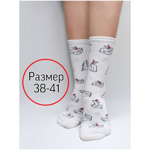 Носки Happy Frensis с новогодним принтом/рисунком "Кроличья камасутра" белые