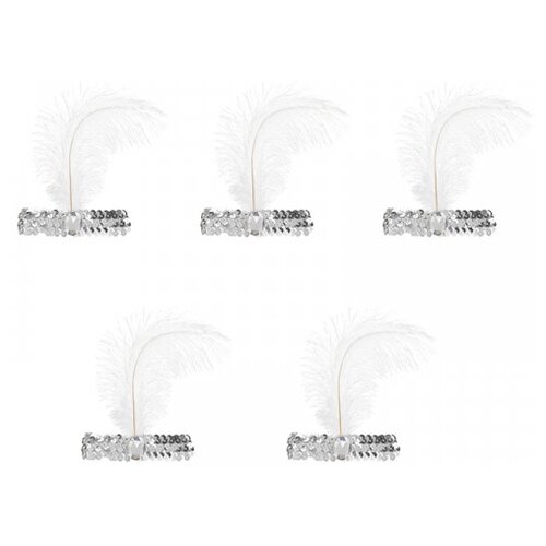 Повязка на голову с пером, цвет белый (Набор 5 шт.)