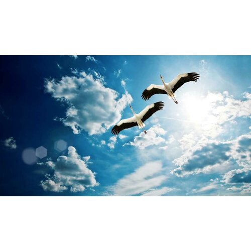 Картина на экокоже 50x80 LinxOne "Heron birds небо sky летать" интерьер для дома / декор на стену / дизайн