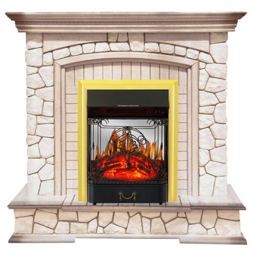 Электрокамин Royal Flame Preston (слоновая кость с патиной) с очагом Majestic FX M Brass (слоновая кость)