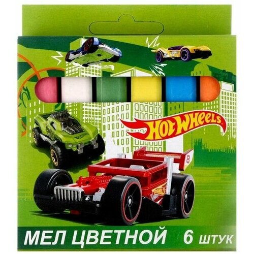 Мел цветной Hot Wheels, 6 шт. в картонной упаковке с европодвесом