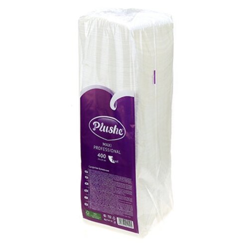 Салфетки бумажные 24х24см "Plushe Maxi Professional", 1 слойные, 400 штук в упаковке, сплошное тиснение, белый
