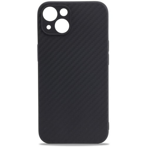 Силиконовый чехол для Apple iPhone 14 (Эпл Айфон 14) тонкий, с текстурой карбон, надежно лежит в руке, черный чехол